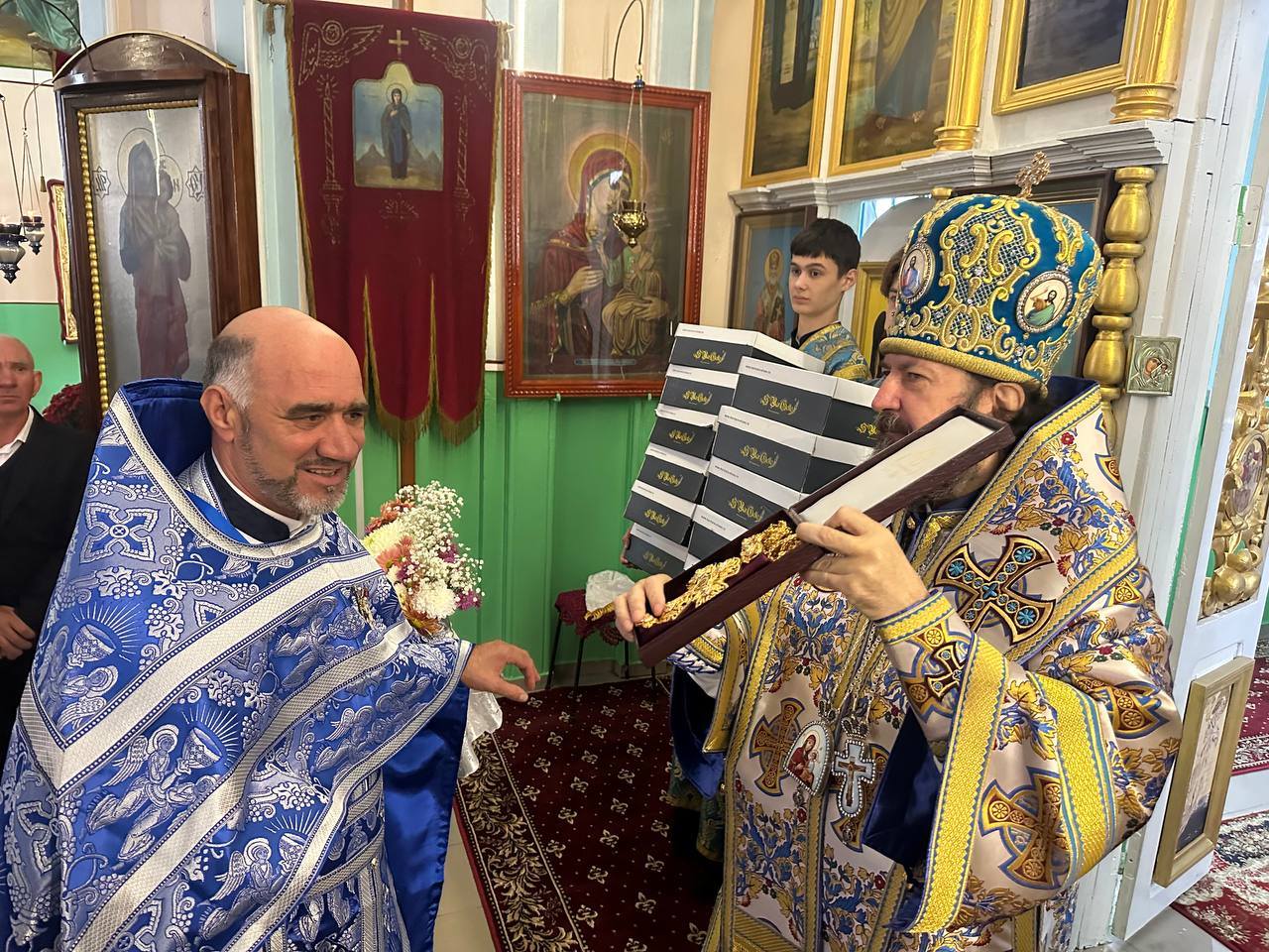 La sfârșitul Sfintei Liturghii, Înaltpreasfinția Sa a ținut să felicite parohul și comunitatea credincioșilor ai acestei sfinte biserici cu această deosebită zi de sfințire, aducând totodată și cuvinte de apreciere pentru toate lucrările de renovare înfăptuite la acest Sfânt Locaș. Apoi Înaltpreasfinția Sa i-a oferit în dar părintelui paroh o frumoasă cruce pectorală.