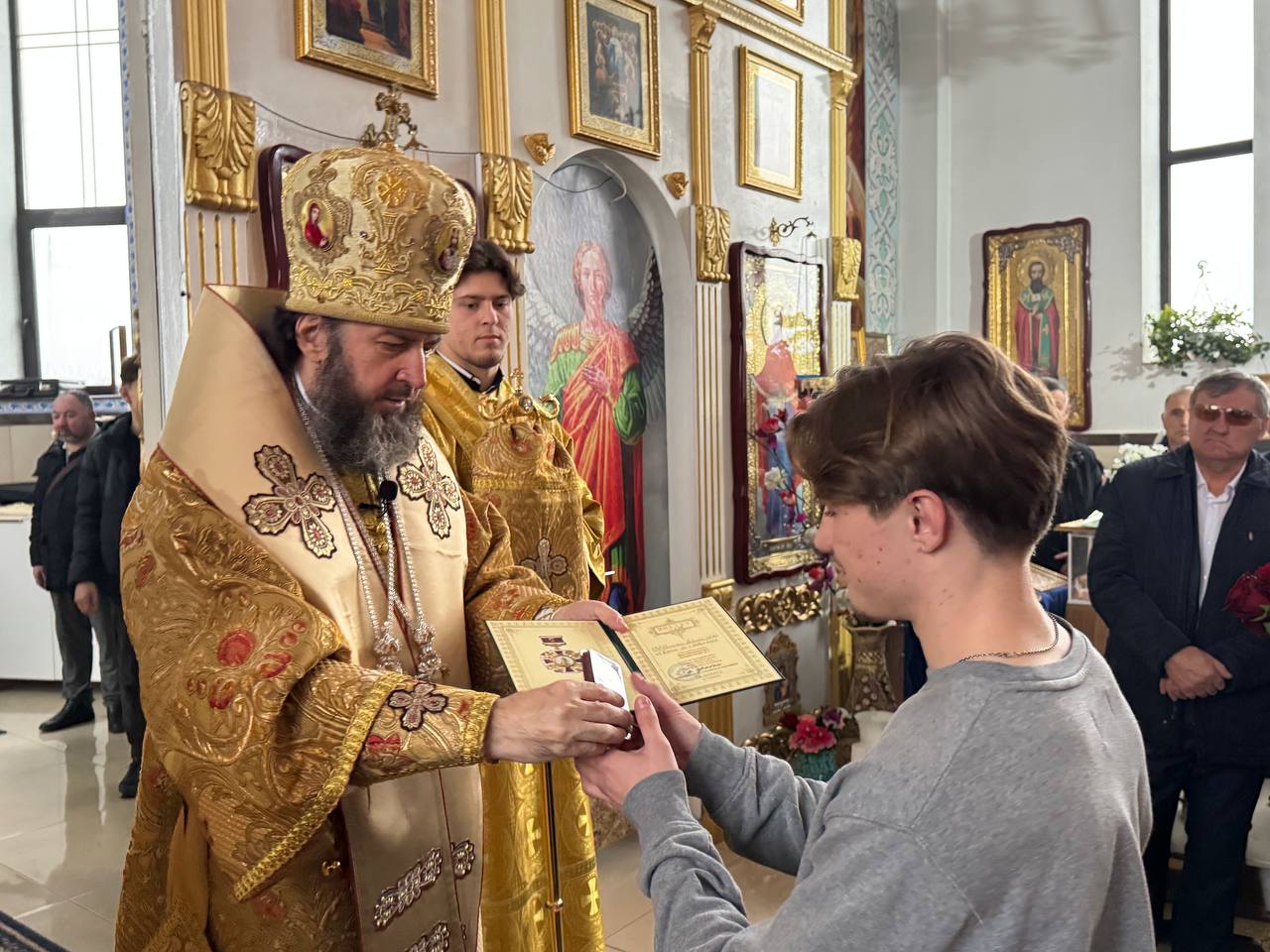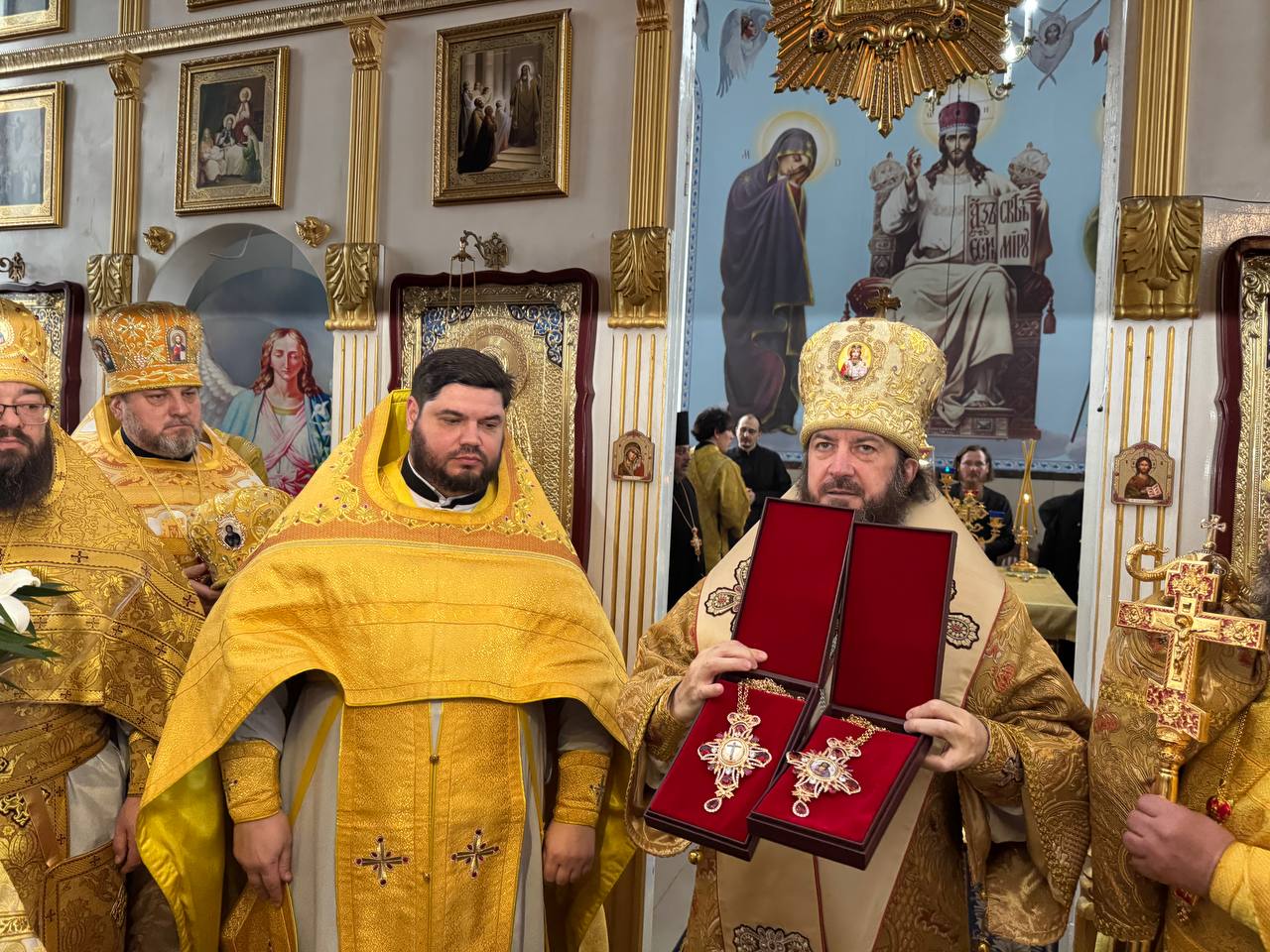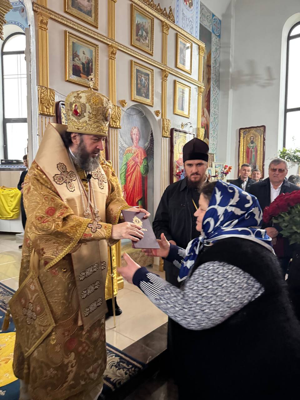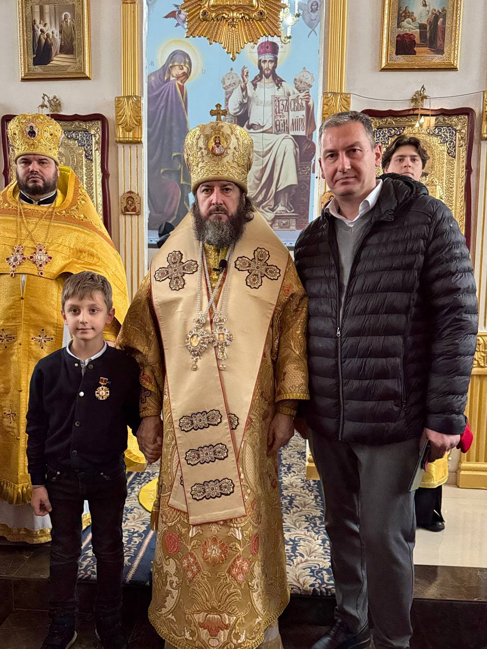 După aceasta Înaltpreasfinția Sa l-a decorat pe ctitorul principal al bisericii, dnl Iurie VRABIE, cu medalia mitropolitană, ,,Sf. Ierarh Dionisie Erhan”, în semn de apreciere și recunoștință pentru toată jertfa și contribuția considerabilă din partea domnie sale oferită cu generozitate la edificarea Sfintei Biserici și a trapezei din curtea bisericii. Apoi Chiriarhul a înmânat Medalii Eparhiale și Diplome Arhierești unor ctitori și binefăcători ai acestei biserici.