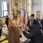 După rugăciunea Tatăl nostru…, Ierarhul a împărtășit credincioși ce s-au pregătit pentru Sfânta Împărtășanie.