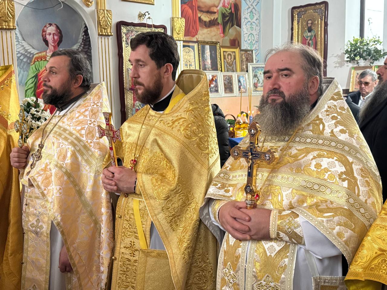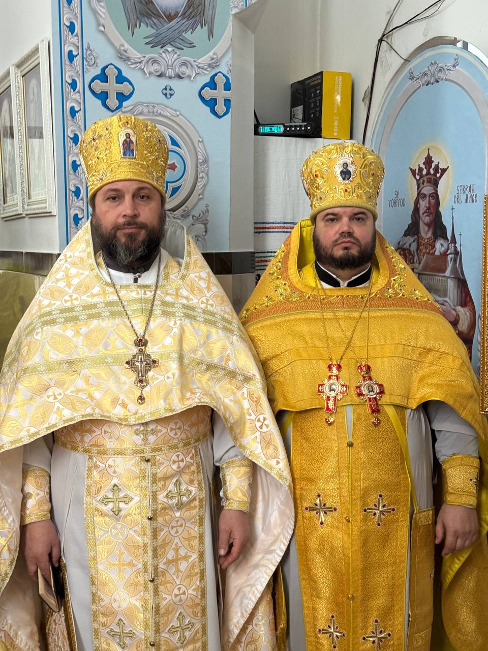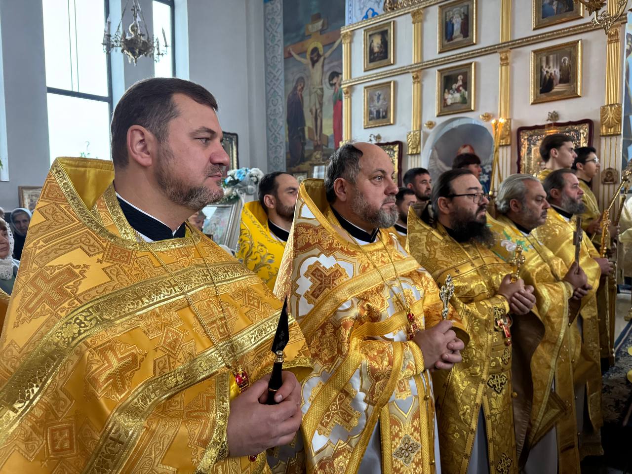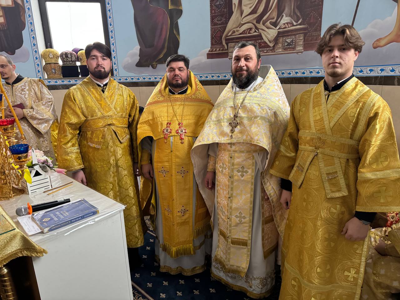 Alături de Înaltpreasfințitul Arhiepiscop PETRU au coliturghisit parohul bisericii ,,Acoperământul Maicii Domnului”, Prot. Vadim COROSTINCHI, omagiatul zilei, care a împlinit frumoasa vârstă de 40 ani de viață. De asemenea, alături de Ierarh au coliturghisit Arhim. KIRIL (Braguța), Starețul Mănăstirii Hîrjauca și Președintele Sectorului Eparhial Mănăstiri și viață monahală; Arhim. SPIRIDON (Marin), Egumenul Mănăstirii Hârbovăț; Arhim. SPIRIDON (Jalbă), Starețul Mănăstirii Veverița; Prot. Bartolomeu TURTUREANU, Protopopul Bisericilor din Raionul Ungheni; Prot. Dumitru RANGA, Protopopul Bisericilor din Raionul Nisporeni; Prot. Grigore DODON, Protopopul Bisericilor din Raionul Călărași; Prot. Serghei SLĂNINĂ, Protopopul Bisericilor din Raionul Hîncești; Arhim. PAHOMIE (Jugănaru), Starețul Mănăstirii Bocancea, dar și un impunător soborul de preoți și diaconi.