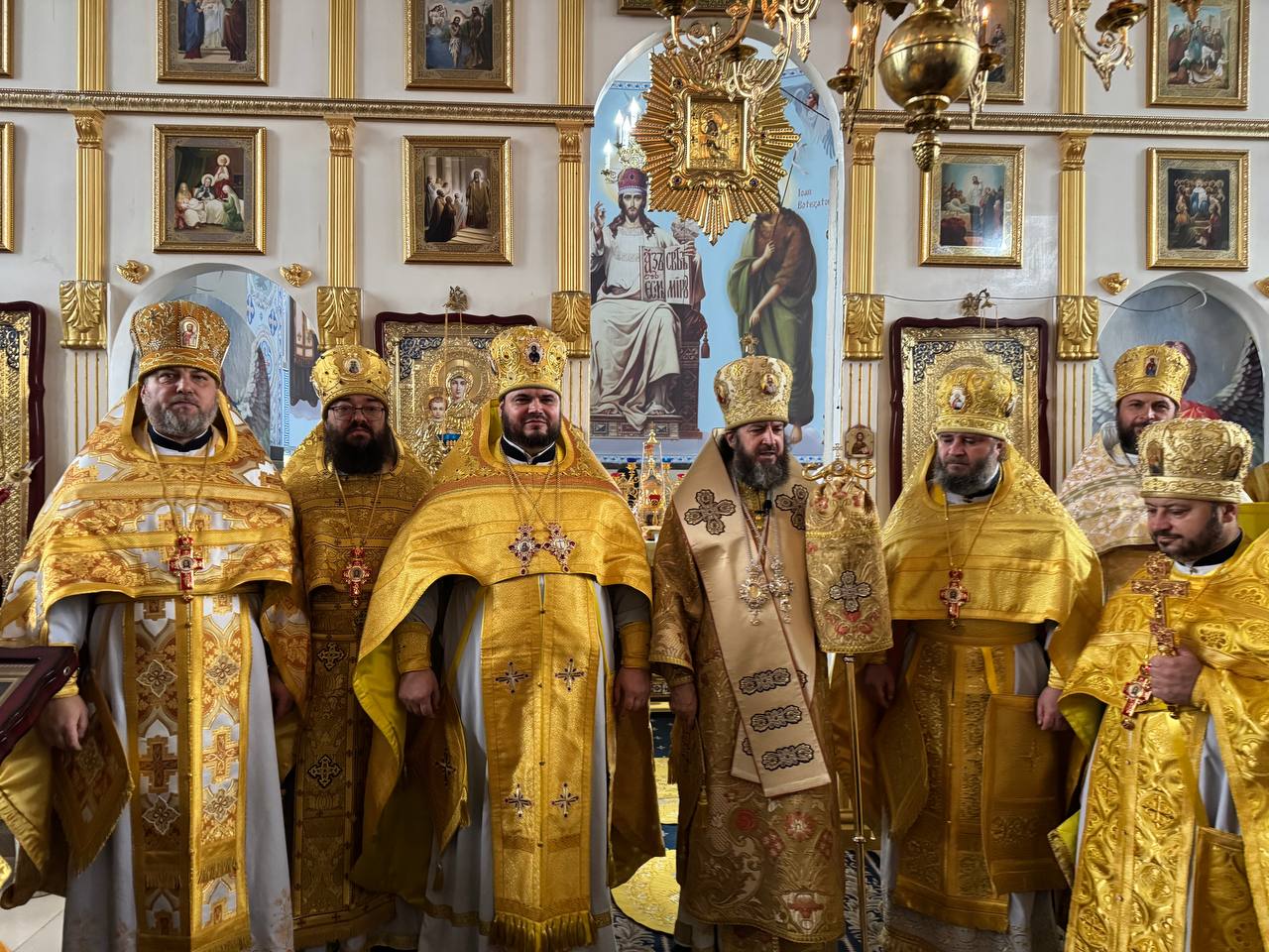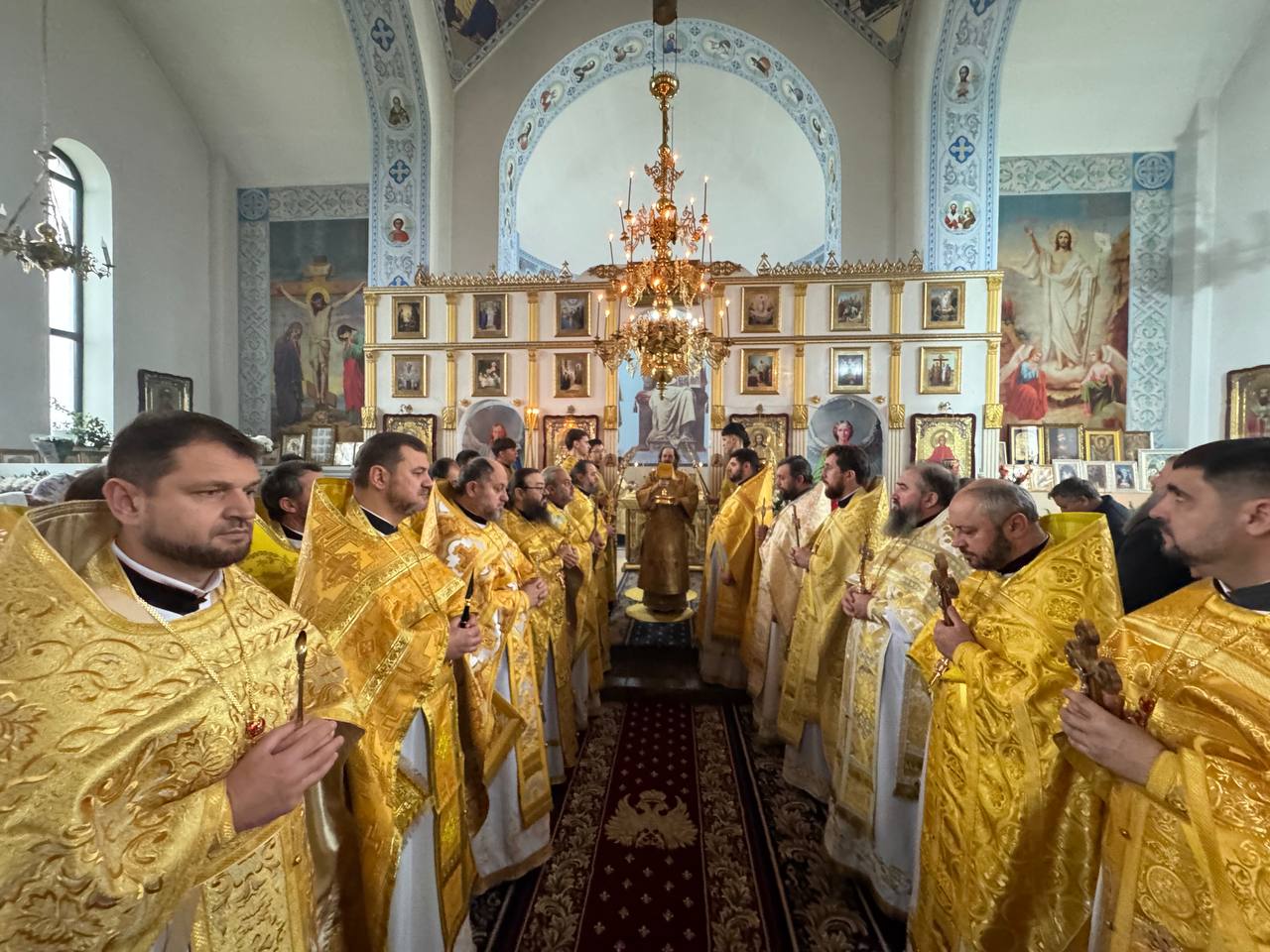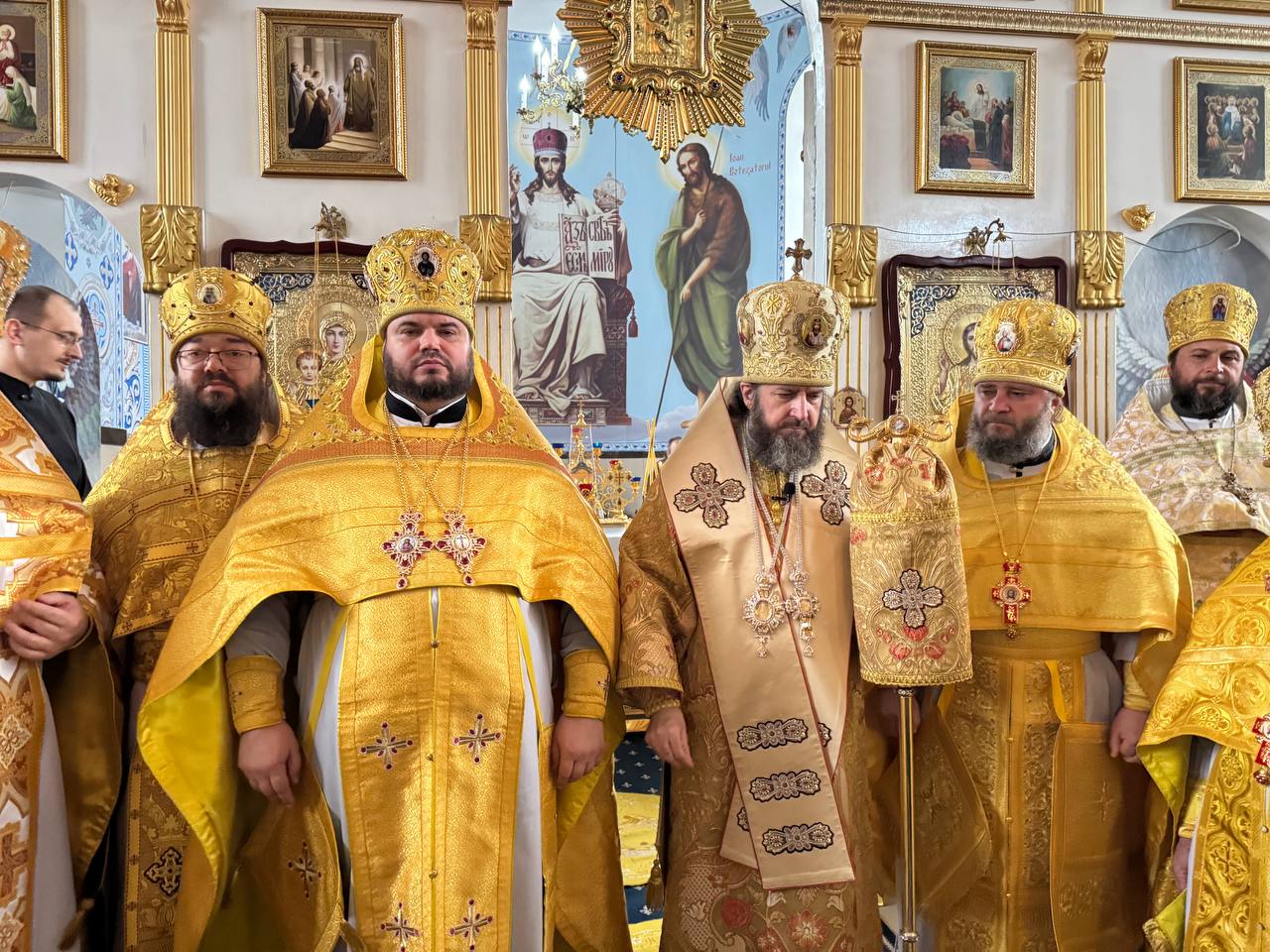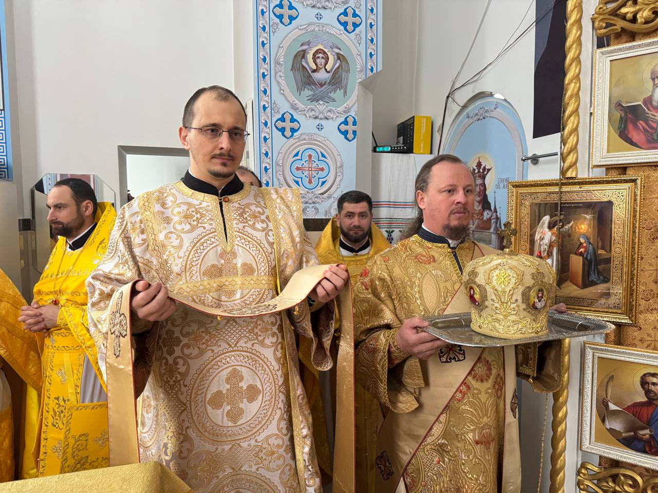 Alături de Înaltpreasfințitul Arhiepiscop PETRU au coliturghisit parohul bisericii ,,Acoperământul Maicii Domnului”, Prot. Vadim COROSTINCHI, omagiatul zilei, care a împlinit frumoasa vârstă de 40 ani de viață. De asemenea, alături de Ierarh au coliturghisit Arhim. KIRIL (Braguța), Starețul Mănăstirii Hîrjauca și Președintele Sectorului Eparhial Mănăstiri și viață monahală; Arhim. SPIRIDON (Marin), Egumenul Mănăstirii Hârbovăț; Arhim. SPIRIDON (Jalbă), Starețul Mănăstirii Veverița; Prot. Bartolomeu TURTUREANU, Protopopul Bisericilor din Raionul Ungheni; Prot. Dumitru RANGA, Protopopul Bisericilor din Raionul Nisporeni; Prot. Grigore DODON, Protopopul Bisericilor din Raionul Călărași; Prot. Serghei SLĂNINĂ, Protopopul Bisericilor din Raionul Hîncești; Arhim. PAHOMIE (Jugănaru), Starețul Mănăstirii Bocancea, dar și un impunător soborul de preoți și diaconi.