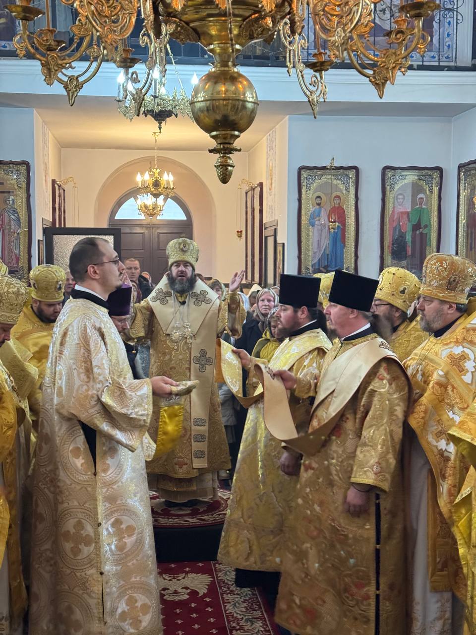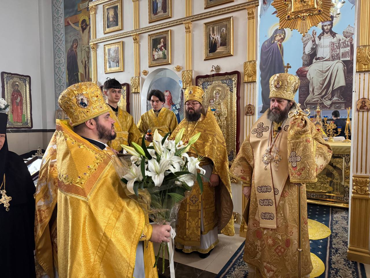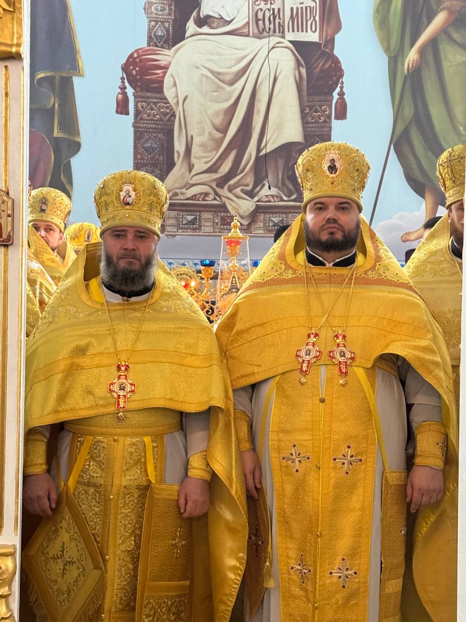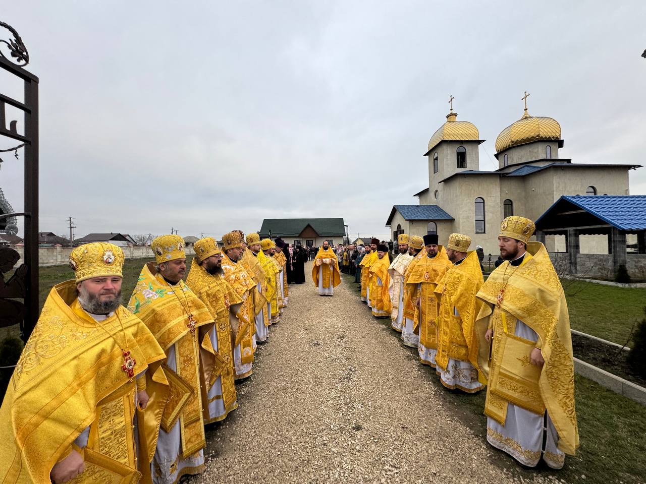 Alături de Înaltpreasfințitul Arhiepiscop PETRU au coliturghisit parohul bisericii ,,Acoperământul Maicii Domnului”, Prot. Vadim COROSTINCHI, omagiatul zilei, care a împlinit frumoasa vârstă de 40 ani de viață. De asemenea, alături de Ierarh au coliturghisit Arhim. KIRIL (Braguța), Starețul Mănăstirii Hîrjauca și Președintele Sectorului Eparhial Mănăstiri și viață monahală; Arhim. SPIRIDON (Marin), Egumenul Mănăstirii Hârbovăț; Arhim. SPIRIDON (Jalbă), Starețul Mănăstirii Veverița; Prot. Bartolomeu TURTUREANU, Protopopul Bisericilor din Raionul Ungheni; Prot. Dumitru RANGA, Protopopul Bisericilor din Raionul Nisporeni; Prot. Grigore DODON, Protopopul Bisericilor din Raionul Călărași; Prot. Serghei SLĂNINĂ, Protopopul Bisericilor din Raionul Hîncești; Arhim. PAHOMIE (Jugănaru), Starețul Mănăstirii Bocancea, dar și un impunător soborul de preoți și diaconi.
