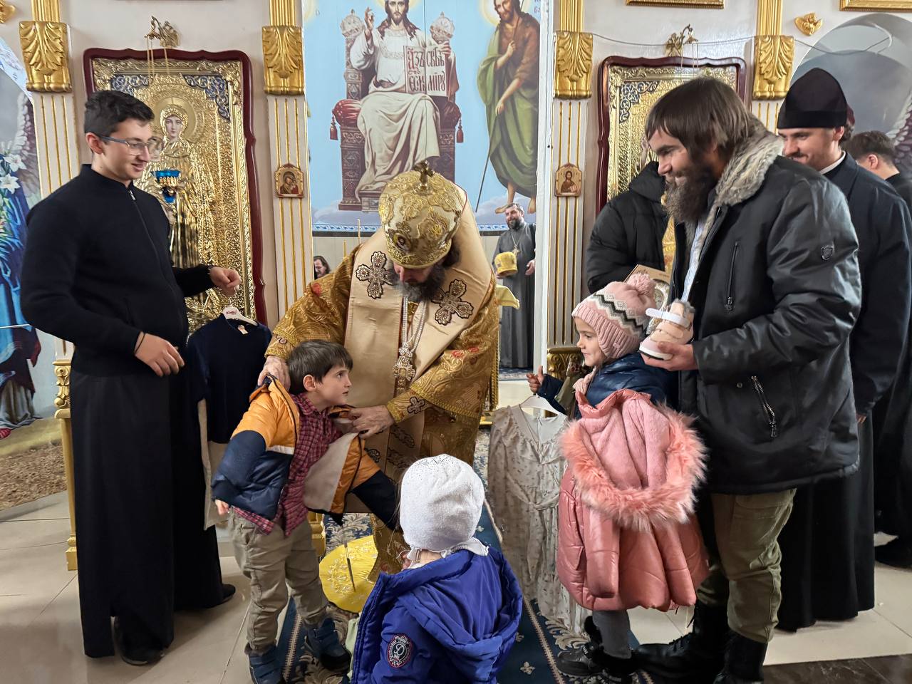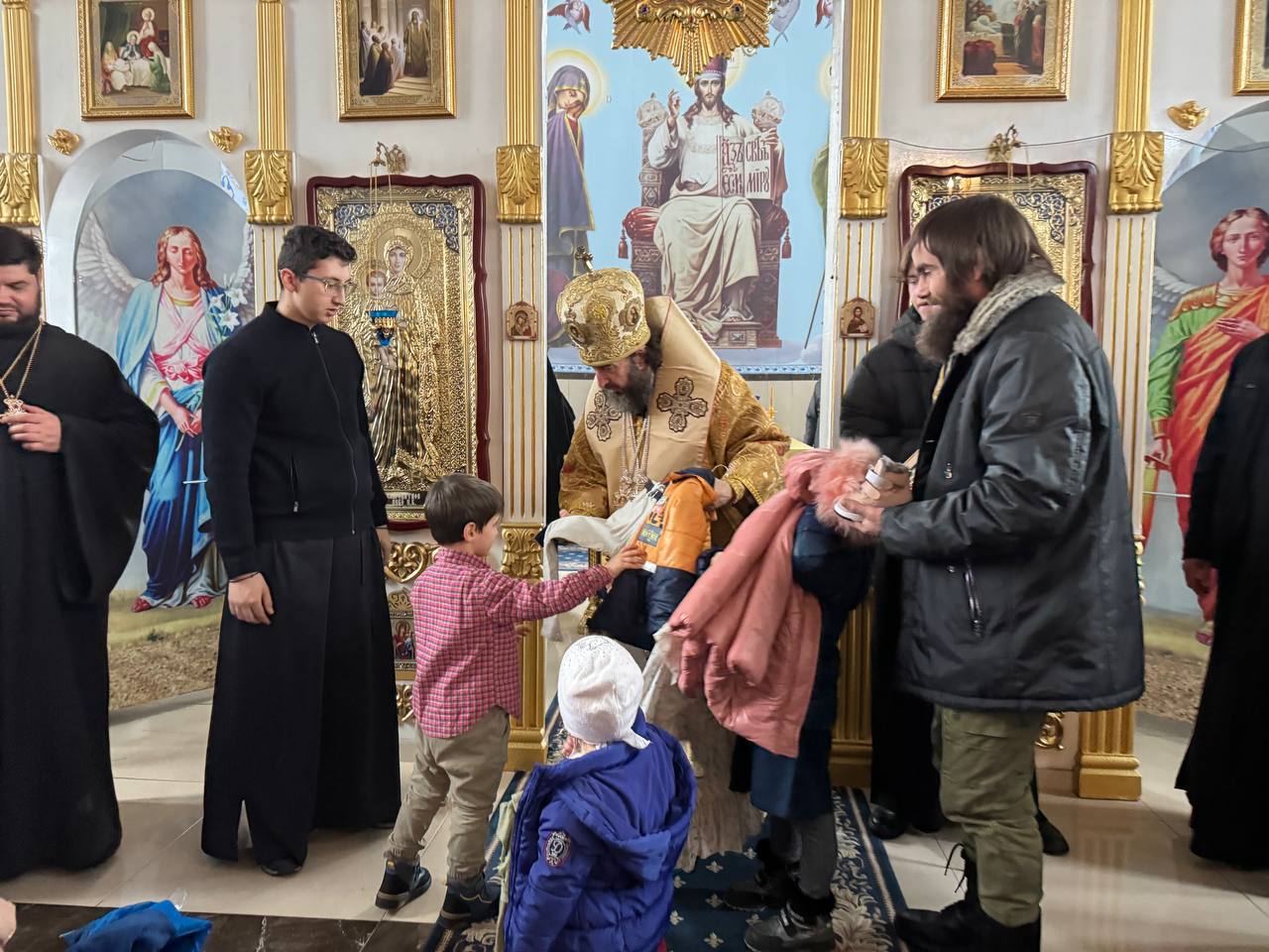 Menționăm și faptul că Înaltpreasfințitul Arhiepiscop PETRU a oferit unei familii numeroase, a unui creștin activ, care participă la procesiunele Drumul Crucii mai multe articole vestimentare noi, (scurte de iarnă, hanorace, pulovere), pentru copiii.
