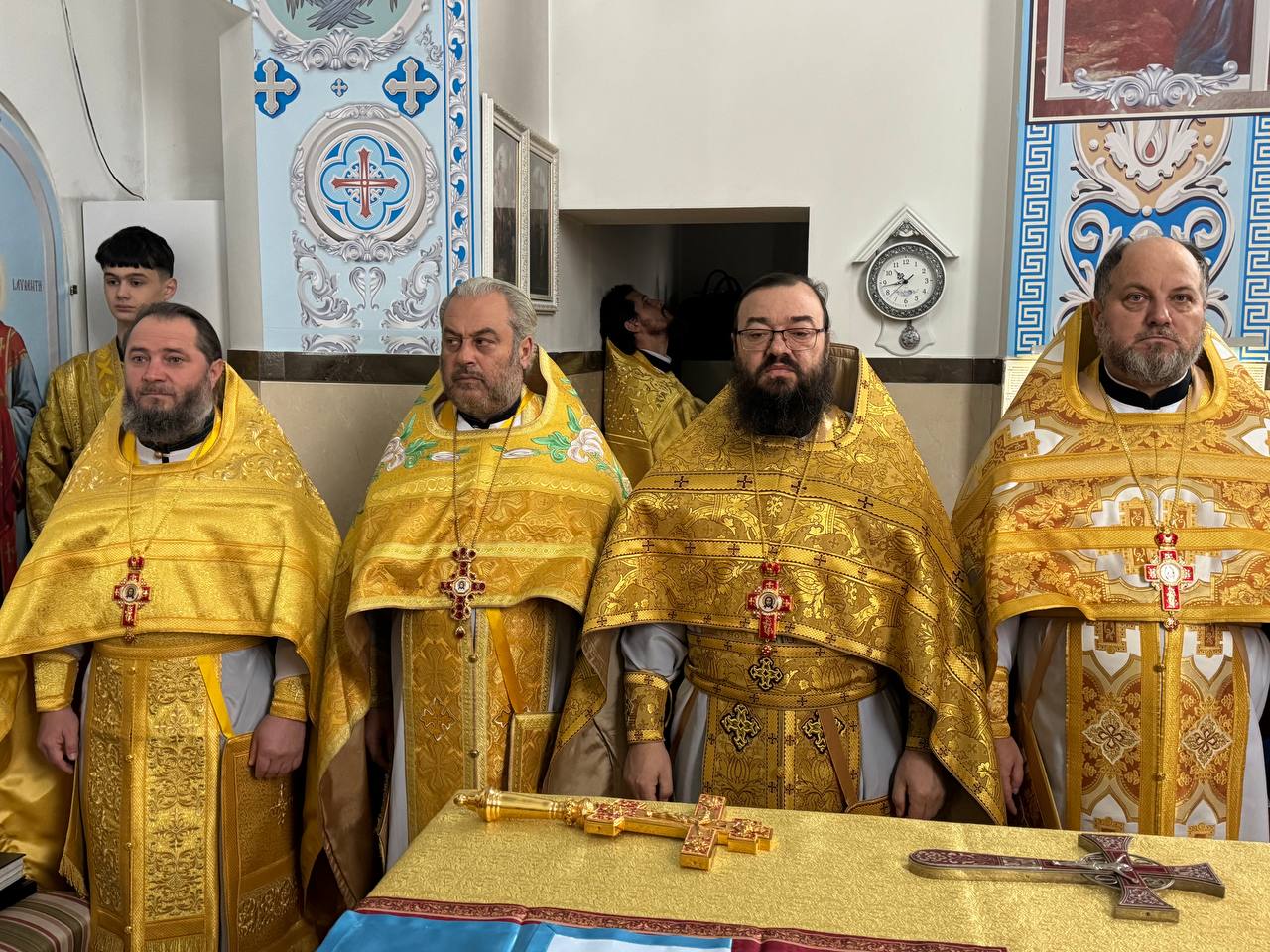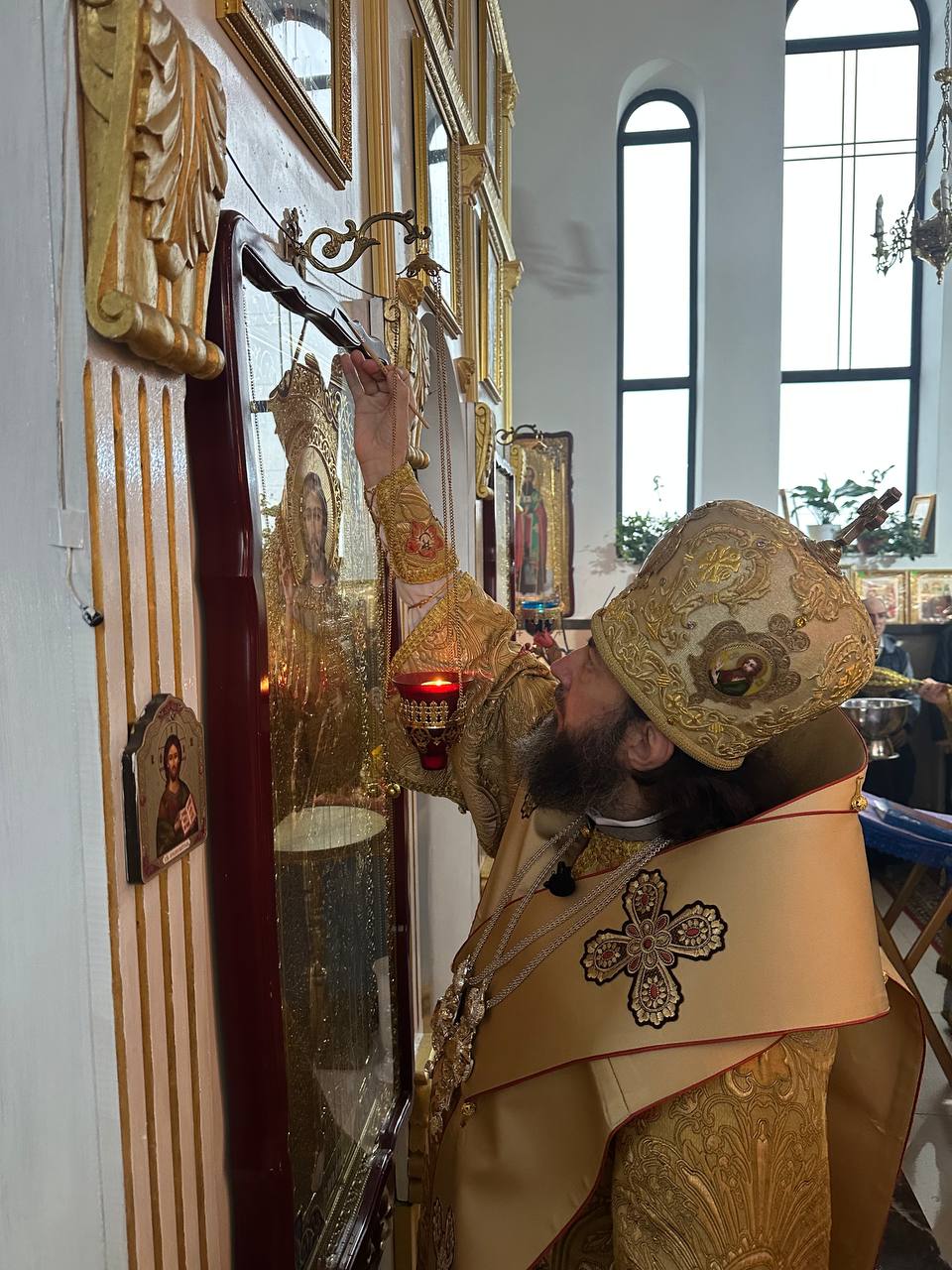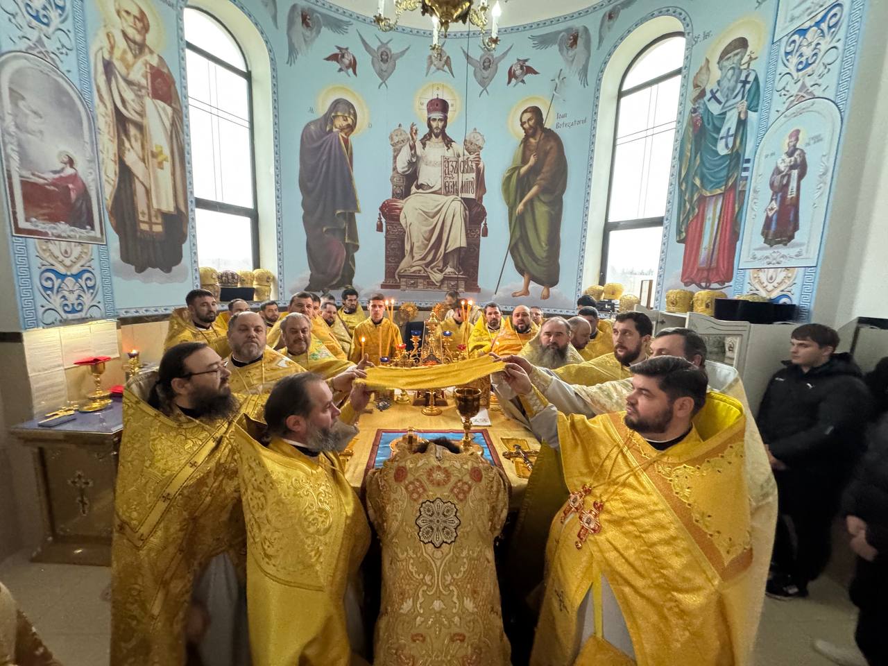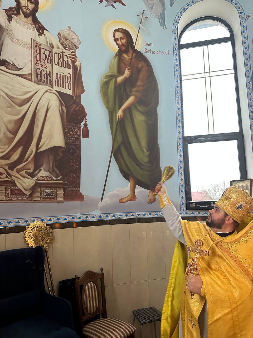 Înainte de începerea Sfintei Liturghii, Înaltpreasfințitul Arhiepiscop PETRU a citit rugăciunea de sfințire a bisericii, după care Sfântul Locaș a fost uns cu Sfântul și Marele Mir și a fost stropită cu sfânta Agheasmă.