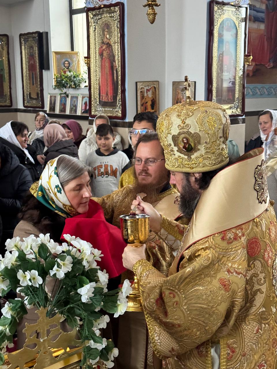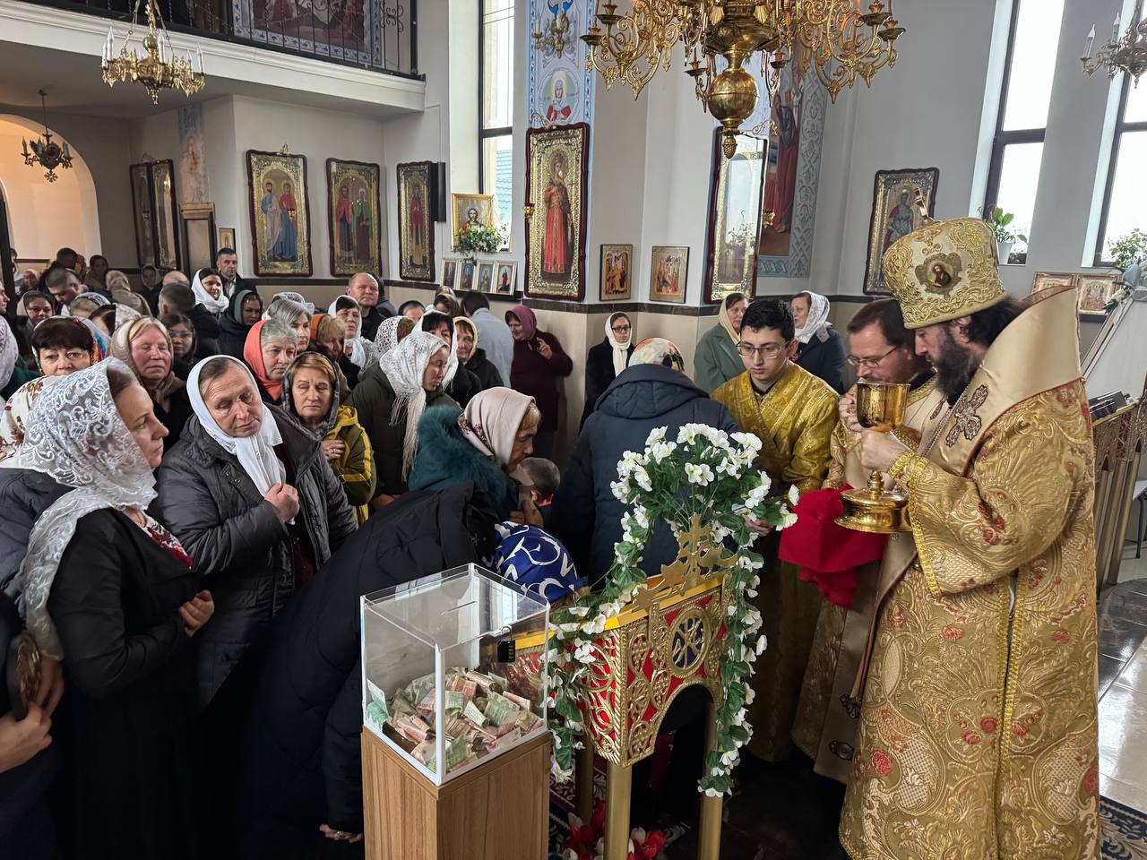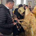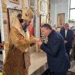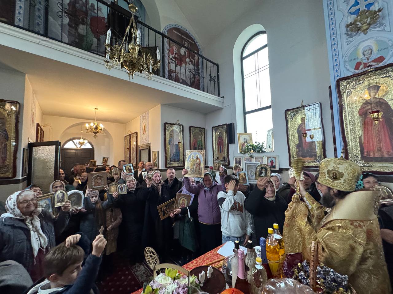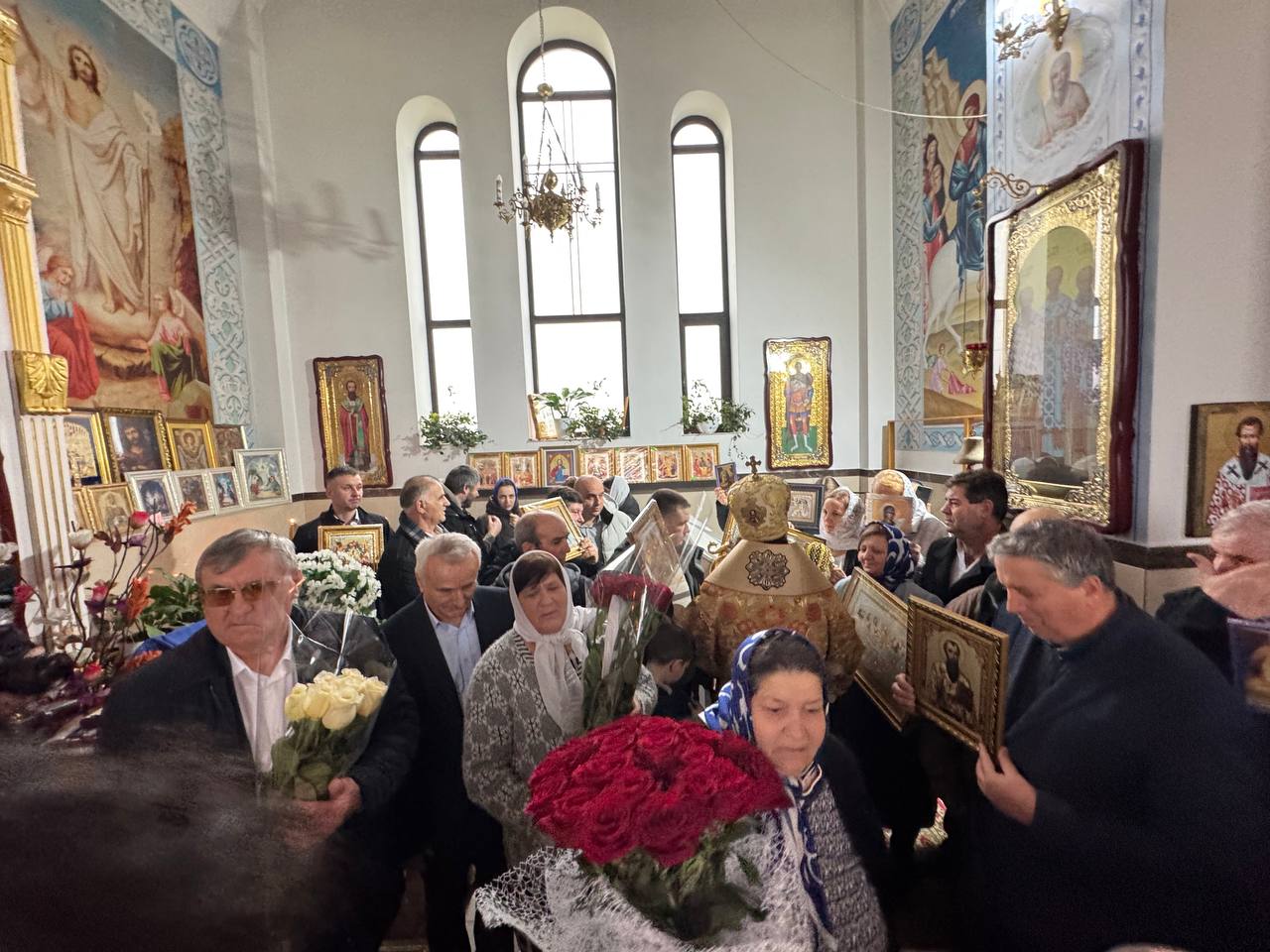Înainte de începerea Sfintei Liturghii, Înaltpreasfințitul Arhiepiscop PETRU a citit rugăciunea de sfințire a bisericii, după care Sfântul Locaș a fost uns cu Sfântul și Marele Mir și a fost stropită cu sfânta Agheasmă.