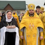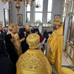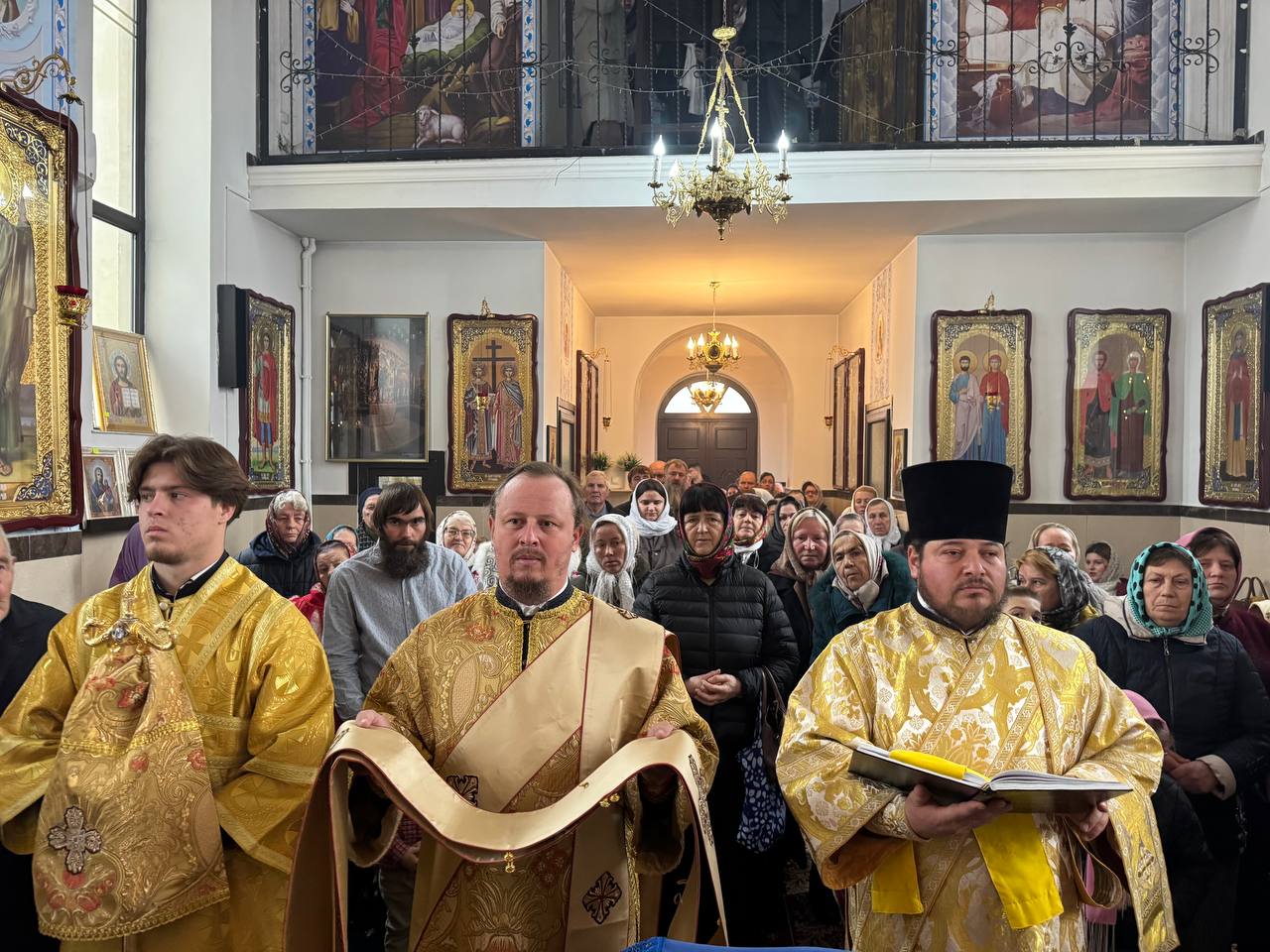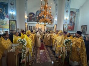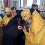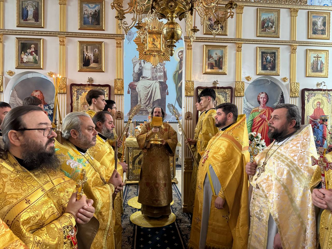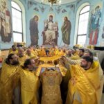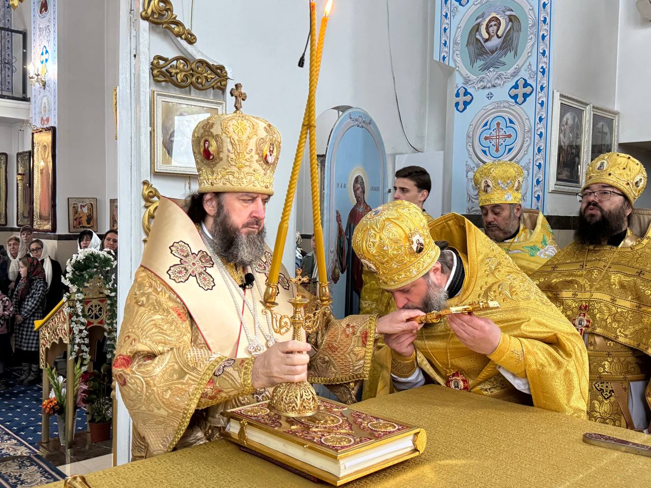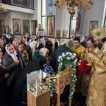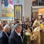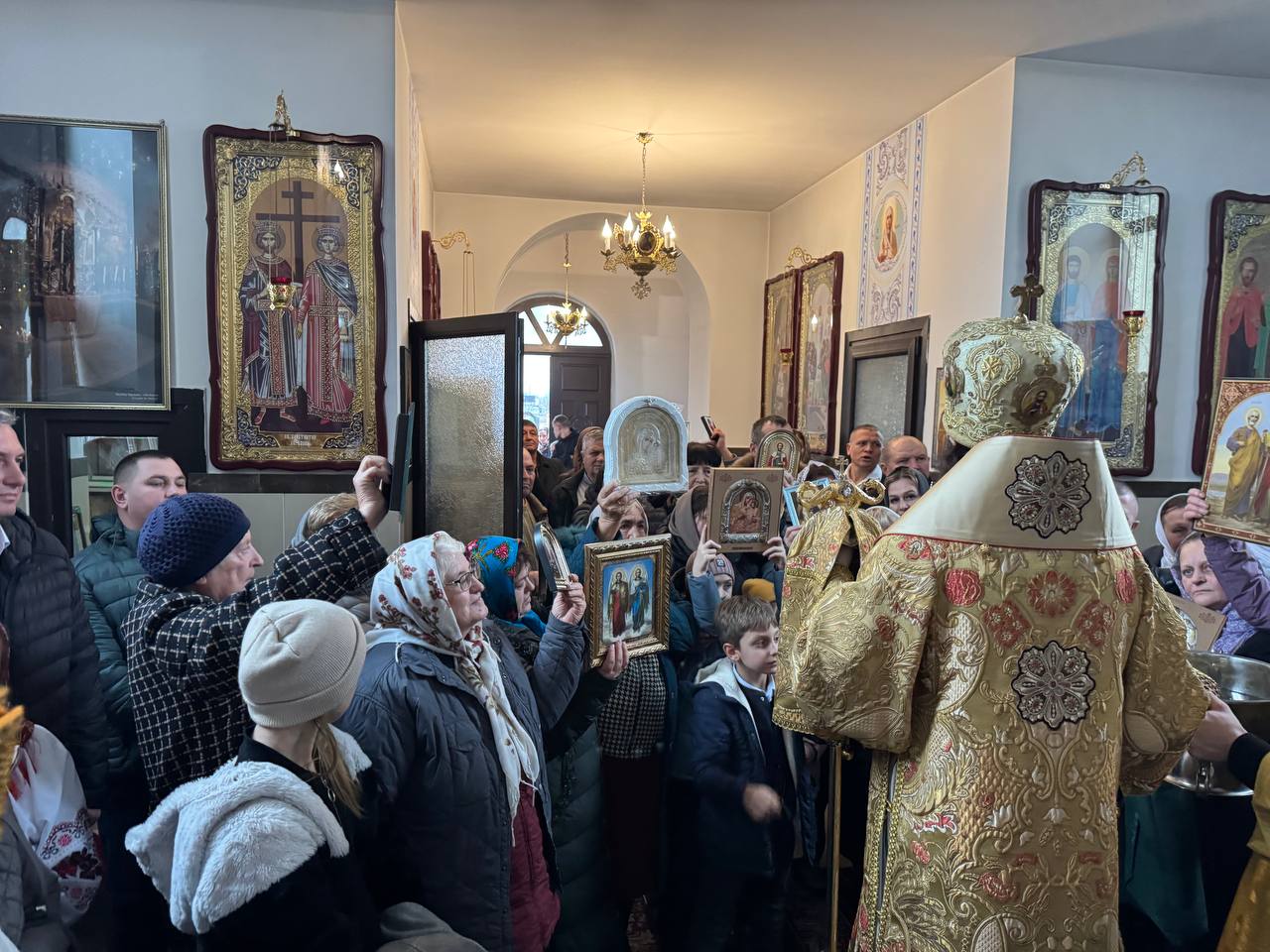 Înainte de începerea Sfintei Liturghii, Înaltpreasfințitul Arhiepiscop PETRU a citit rugăciunea de sfințire a bisericii, după care Sfântul Locaș a fost uns cu Sfântul și Marele Mir și a fost stropită cu sfânta Agheasmă.