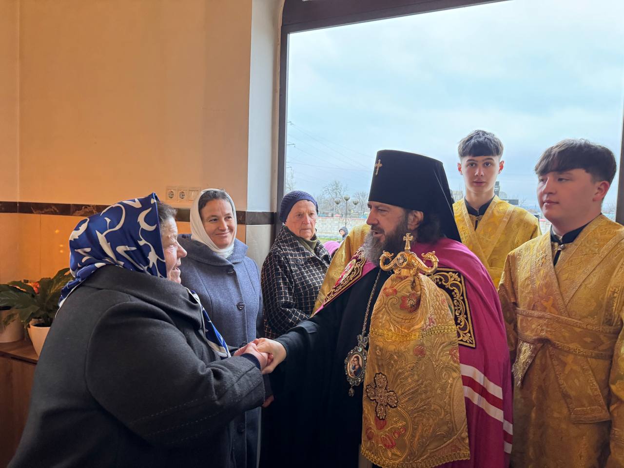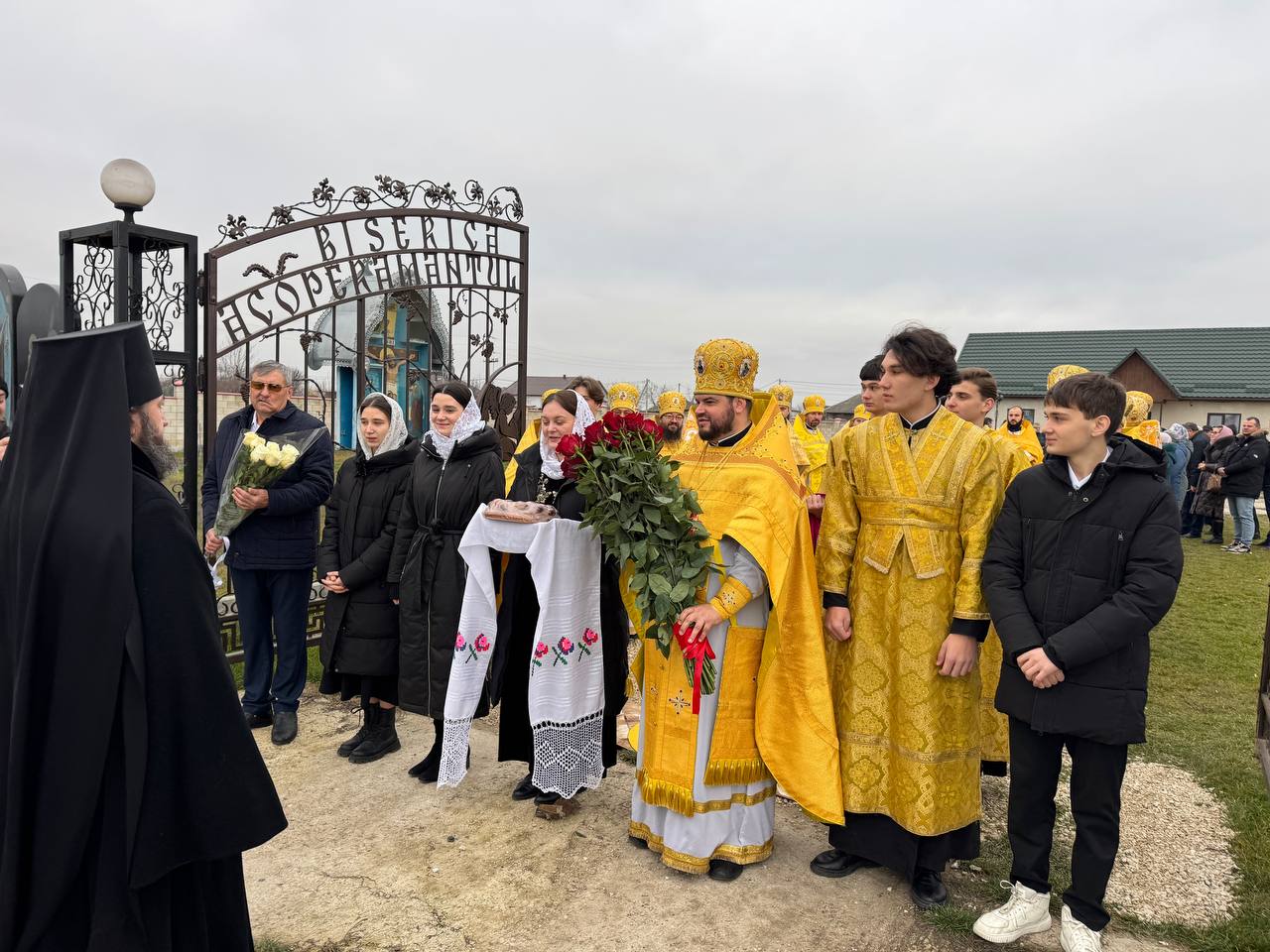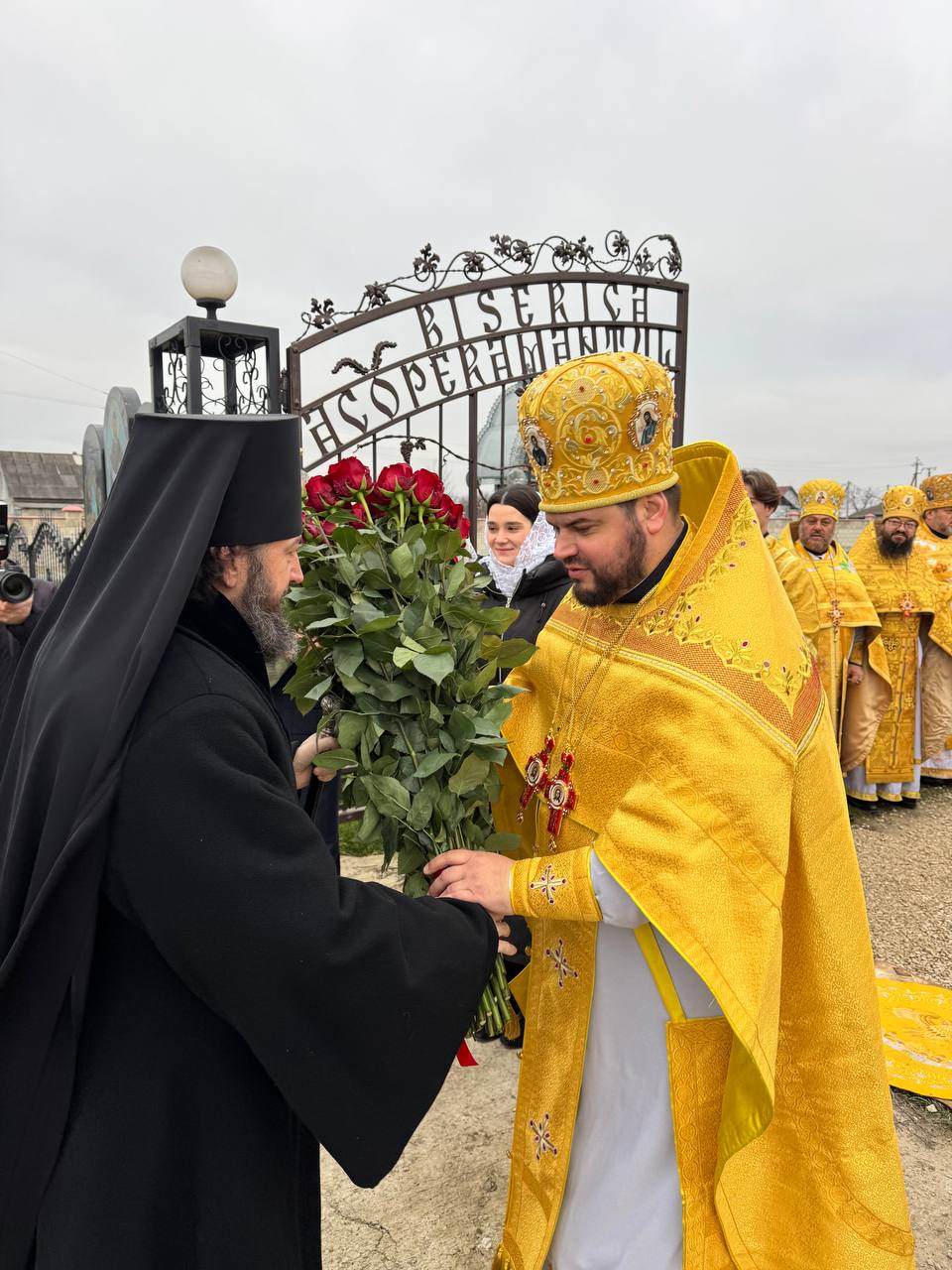 În dimineața zilei, Înaltpreasfinția Sa a fost întâmpinat de parohul acestei biserici, Prot. Vadim COROSTINSCHI, care este și Secretarul Episcopiei de Ungheni și Nisporeni, dimpreună cu soborul de preoți și credincioșii prezenți.