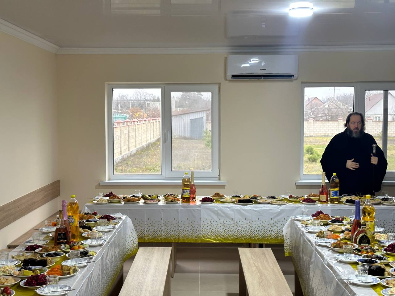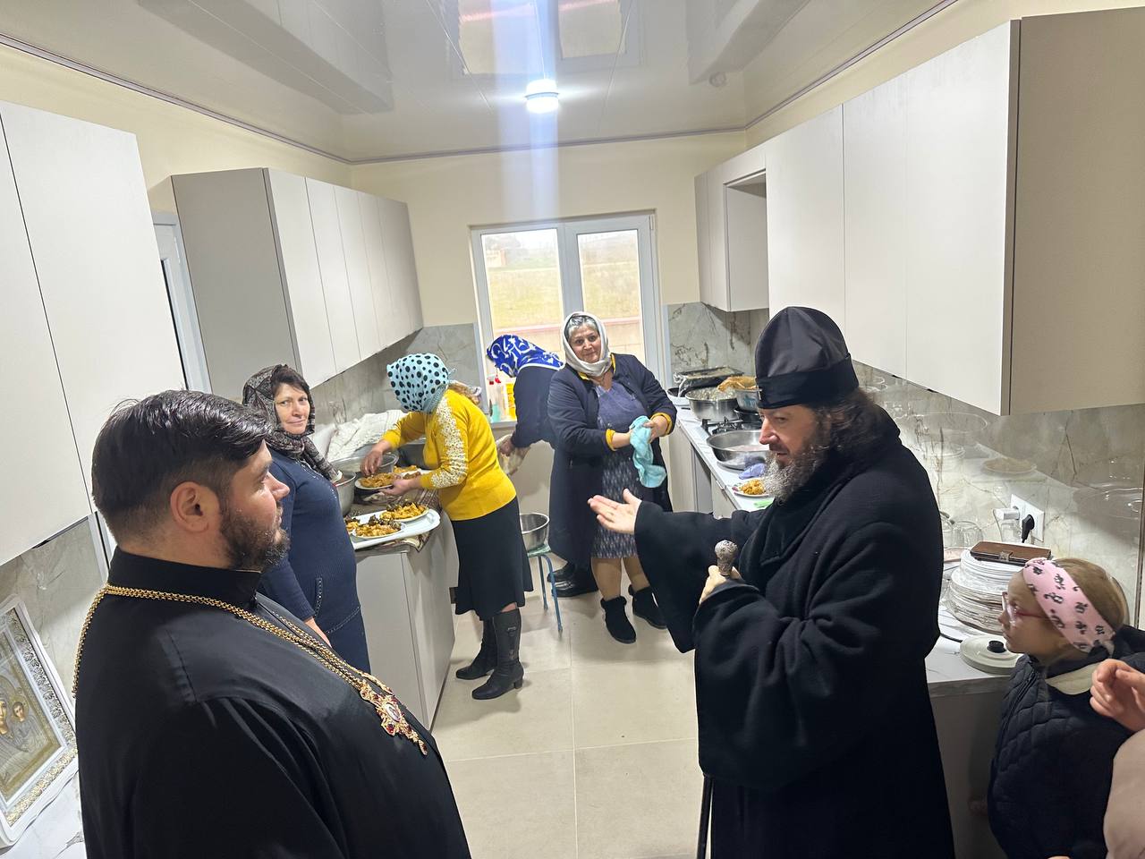 Ierarhul a vizitat și trapeza construită recent în curtea bisericii, apreciind toate eforturile depuse pentru edificarea acestui edificiu atât de necesar și util pe lângă o sfântă biserică.